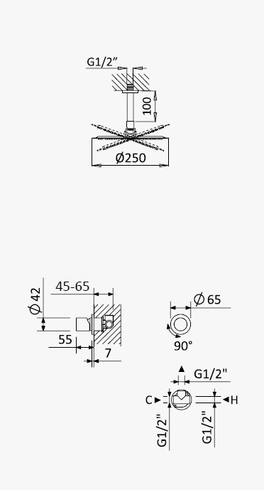 Bateria podtynkowa natryskowa z deszczownicą sufitową