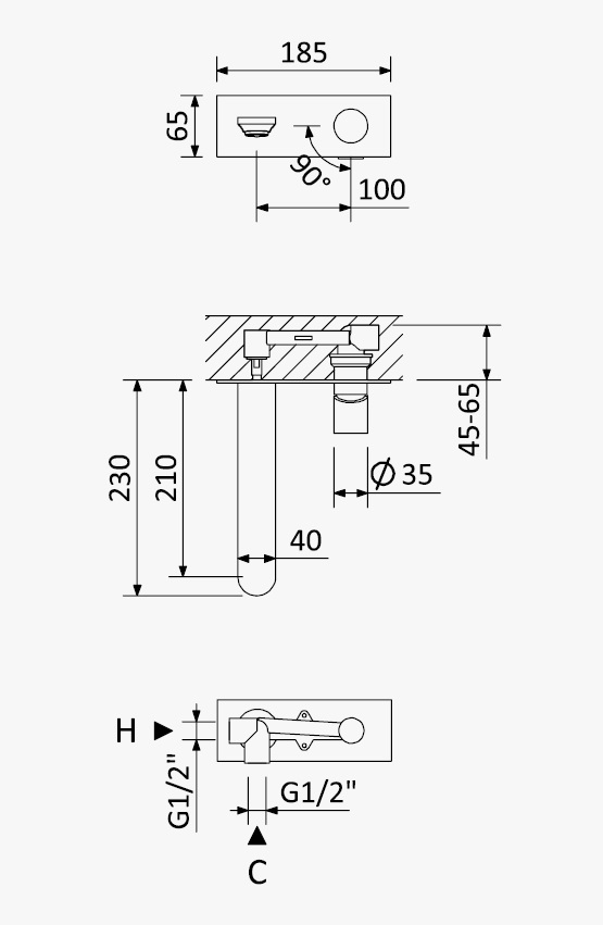 Bruma Adagio Bateria umywalkowa podtynkowa bez korka Chrom 1938201CR
