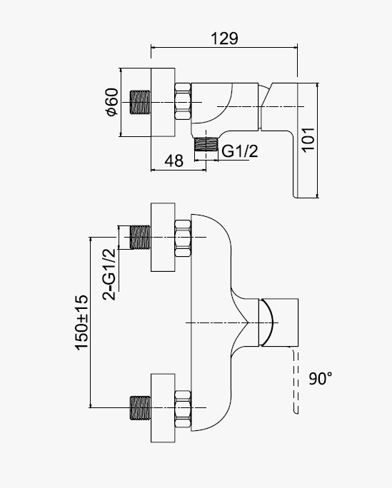 Wysięg przyłącza węża: 48 mm