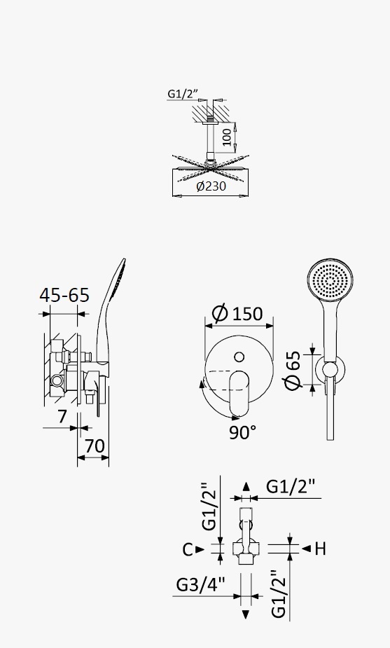 Bruma Coral Zestaw natryskowy podtynkowy z deszczownicą sufitową Ø 230 mm i słuchawką Chrom 1945601CR