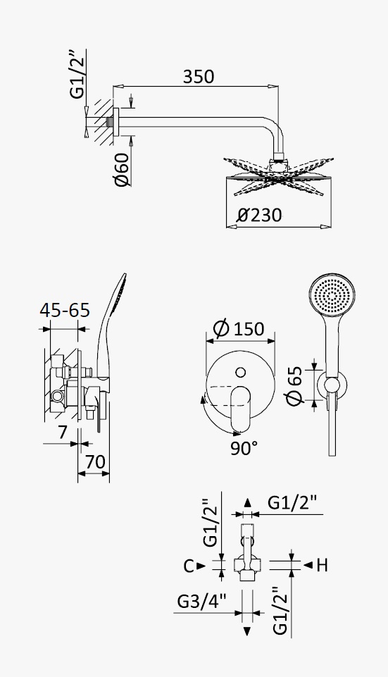 Bruma Coral Zestaw natryskowy podtynkowy z deszczownicą ścienną Ø 230 mm i słuchawką Chrom 1947601CR