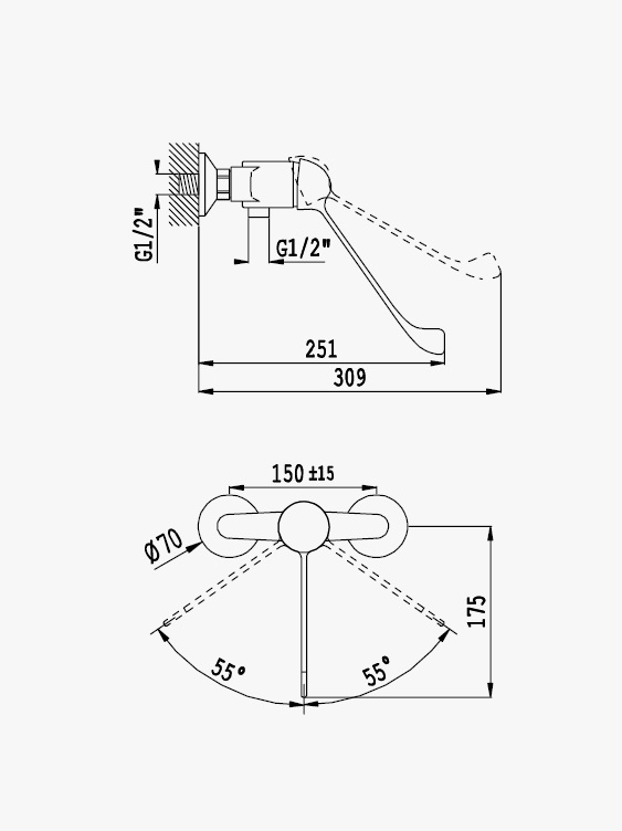 Bruma Mustang Bateria natryskowa z długim uchwytem ścienna Chrom 1240402CR