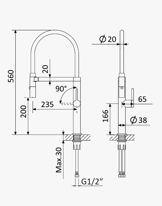 Bruma Mentha Bateria kuchenna z obrotową i wyjmowaną wylewką Chrom 1220035CR