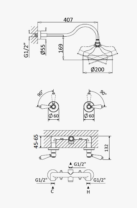 Bruma Classico Zestaw natryskowy podtynkowy z deszczownicą Ø 200 mm ścienną Chrom 1187821CR