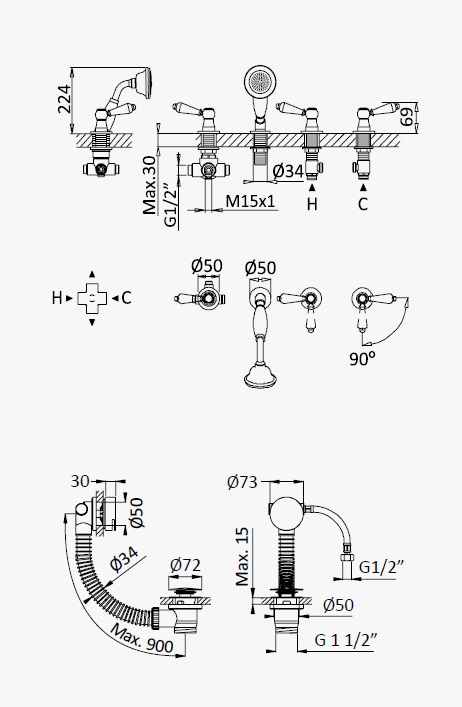 Bruma Classico Zestaw wannowo-natryskowy na brzegu wanny z napełniaczem przez przelew Chrom 1185211CR