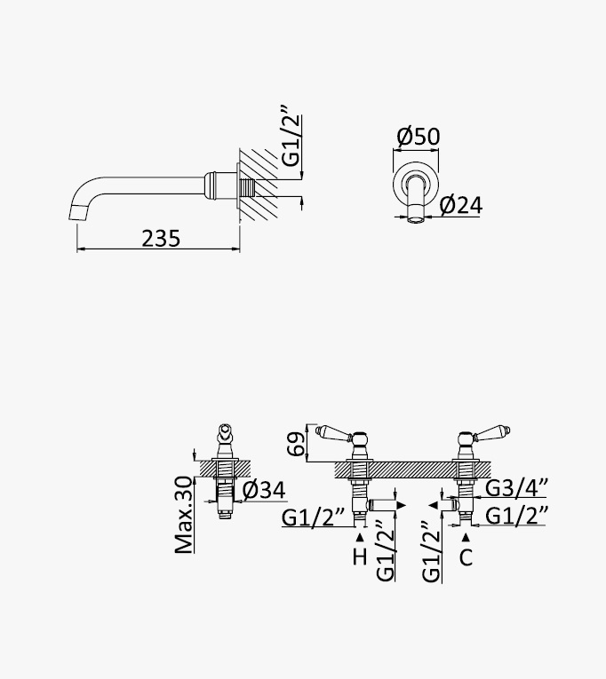 Bruma Classico Bateria umywalkowa z wylewką podtynkową bez korka Chrom 1182203CR