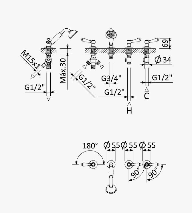 Bruma Classico Bateria natryskowa na blatowa ze słuchawką Chrom 1181801CR