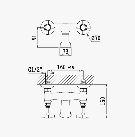 Bateria wannowa ścienna bez przyłącza na zestaw prysznicowy