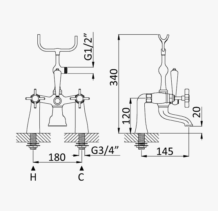 Bruma Imperial Bateria wannowa z uchwytem i słuchawką prysznicową na brzeg wanny Chrom 1177230CR