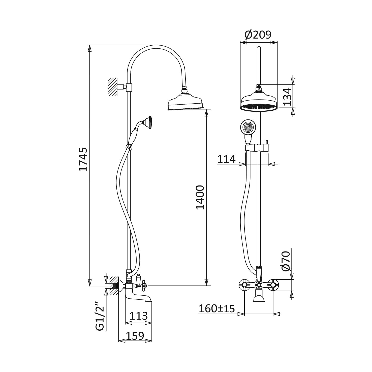 Bruma Imperial Zestaw wannowo-natryskowy Ø 200 mm naścienny z ramieniem ściennym i słuchawką Chrom 1172653CR