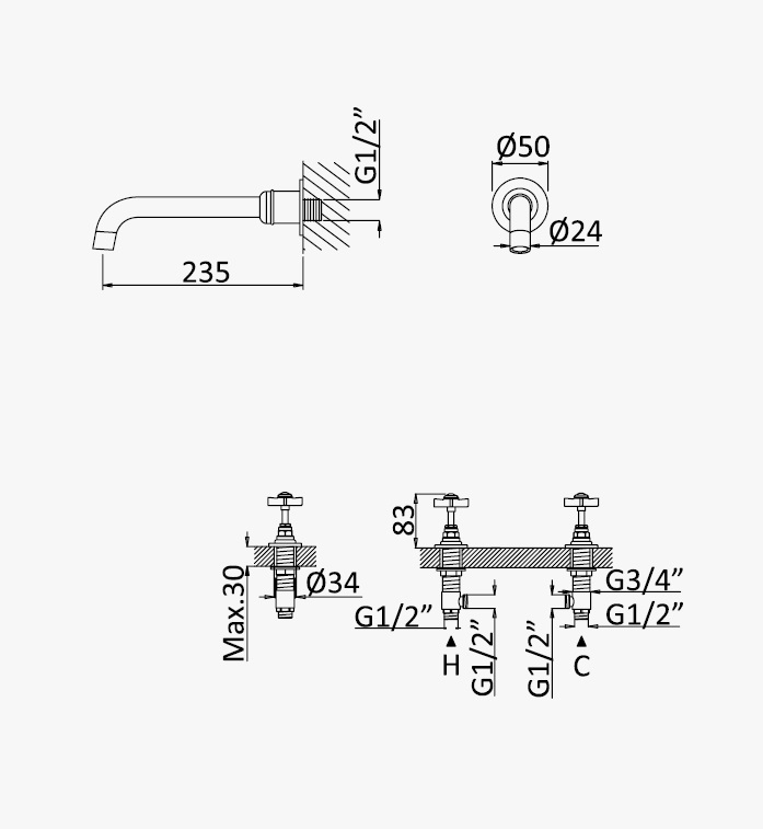 Bruma Imperial Bateria umywalkowa z mieszaczami nablatowymi i wylewką podtynkową bez korka Chrom 1172203CR