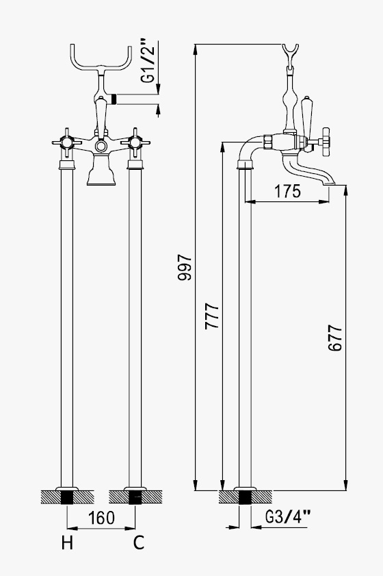 Bruma Imperial Bateria wannowo-natryskowa wolnostojąca ze słuchawką prysznicową Chrom 1170730CR