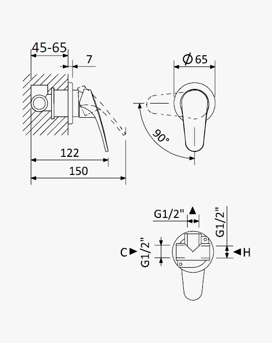 Bateria podtynkowa 1-drożna z jednym uchwytem