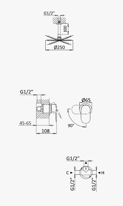 Bateria natryskowy podtynkowa z deszczownicą sufitową,