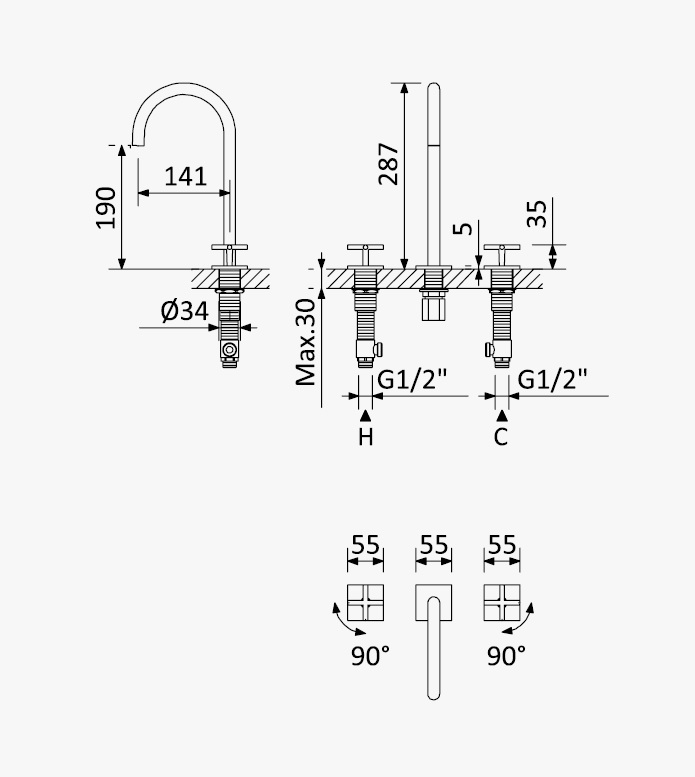 Bateria 3-otworowa umywalkowa