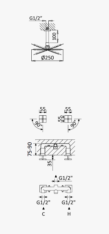 Bateria natryskowa podtynkowa z deszczownicą sufitową