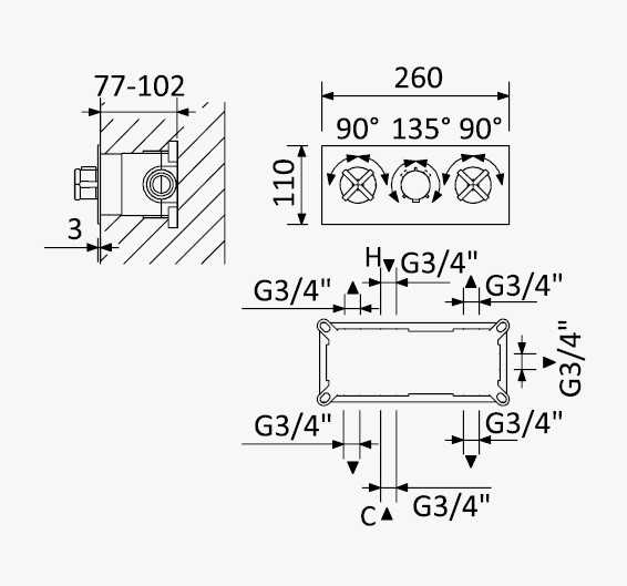 Głębokość montażu: 77 - 102 mm