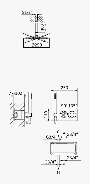 Bruma Hera Zestaw natryskowa termostatyczna podtynkowa z deszczownicą Ø 250 mm sufitową i słuchawką prysznicową Chrom 1066040CR