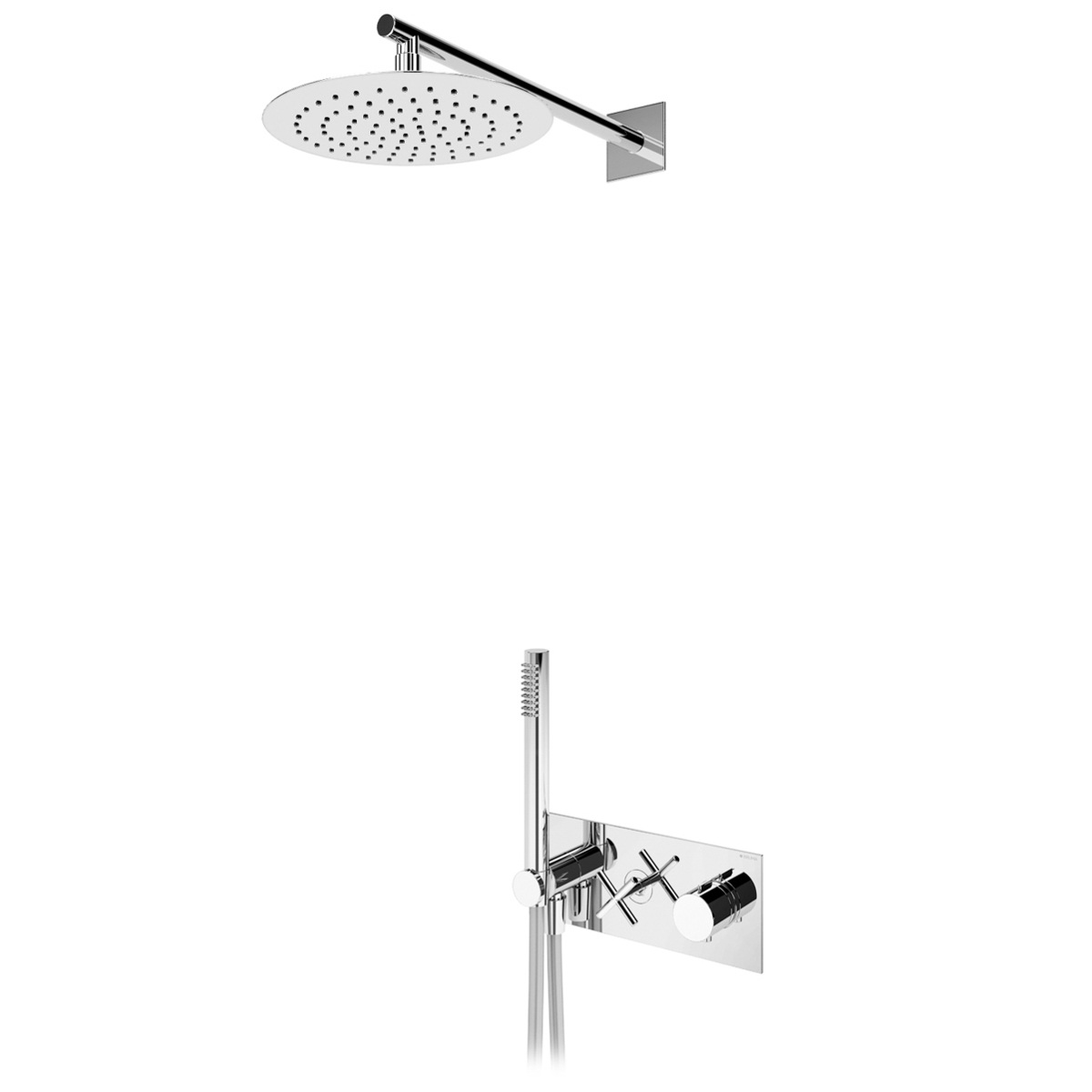 Bateria natryskowa podtynkowa termostatyczna, z deszczownicą ścienną, ze słuchawką prysznicową i przyłączem z uchwytem