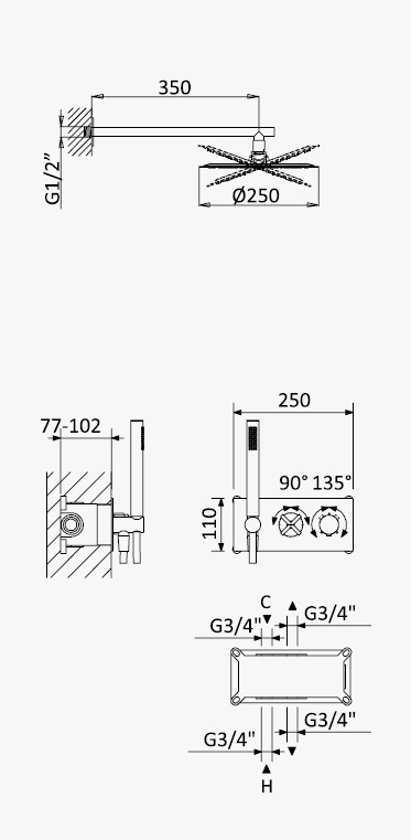 Średnica deszczownicy: 250 mm