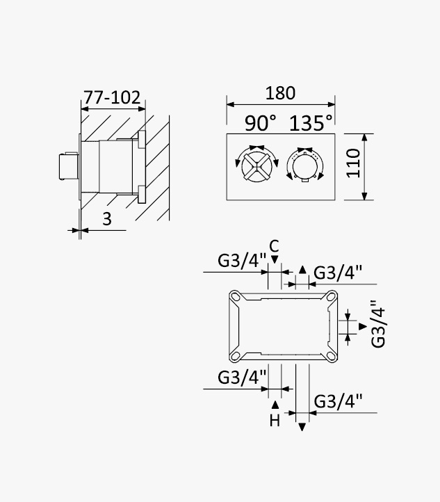 Bateria natryskowa podtynkowa termostatyczna 3-drożna
