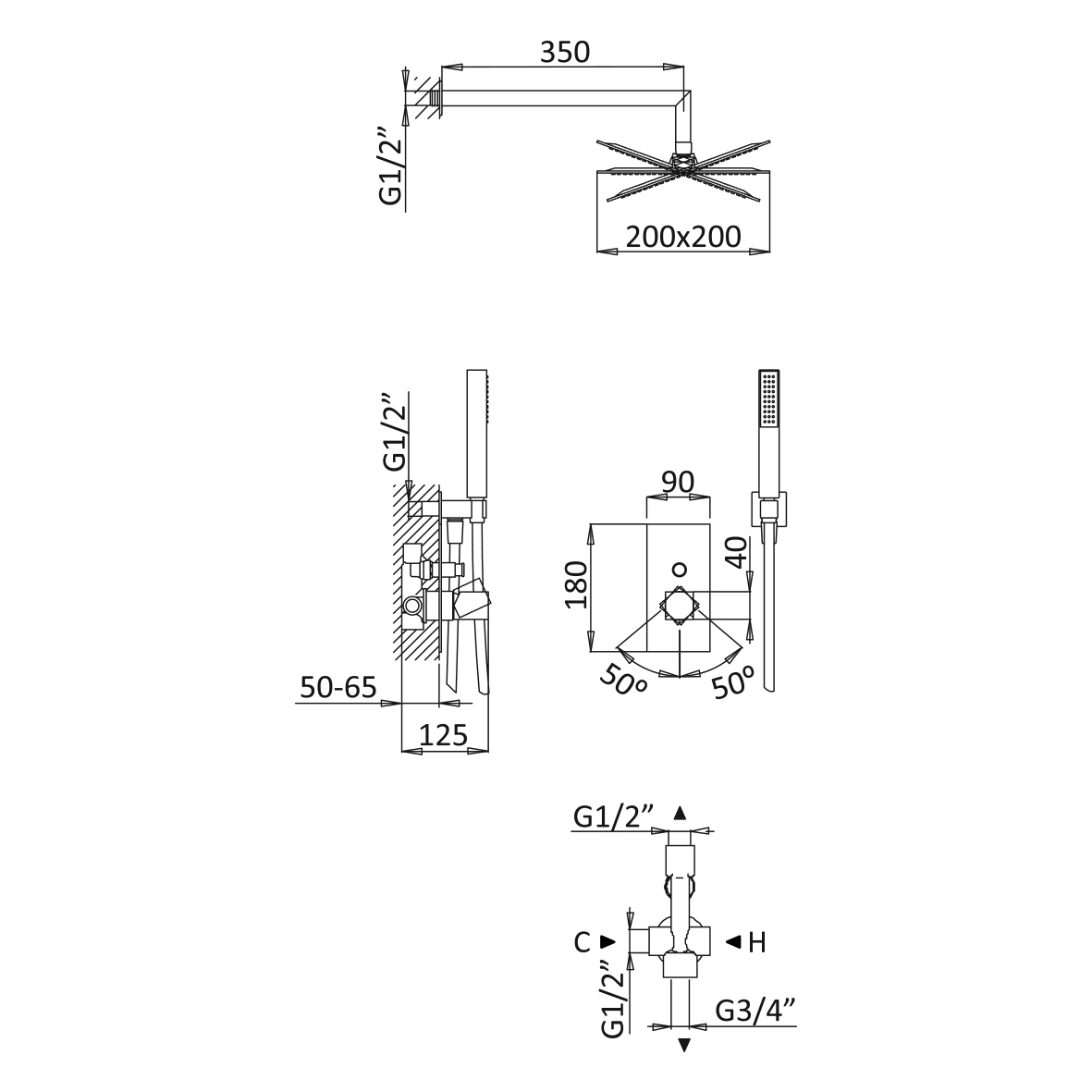 Bruma Escudo 2 Zestaw natryskowy podtynkowy z deszczownicą 200x200 mm i słuchawką prysznicową Chrom 1027661CR