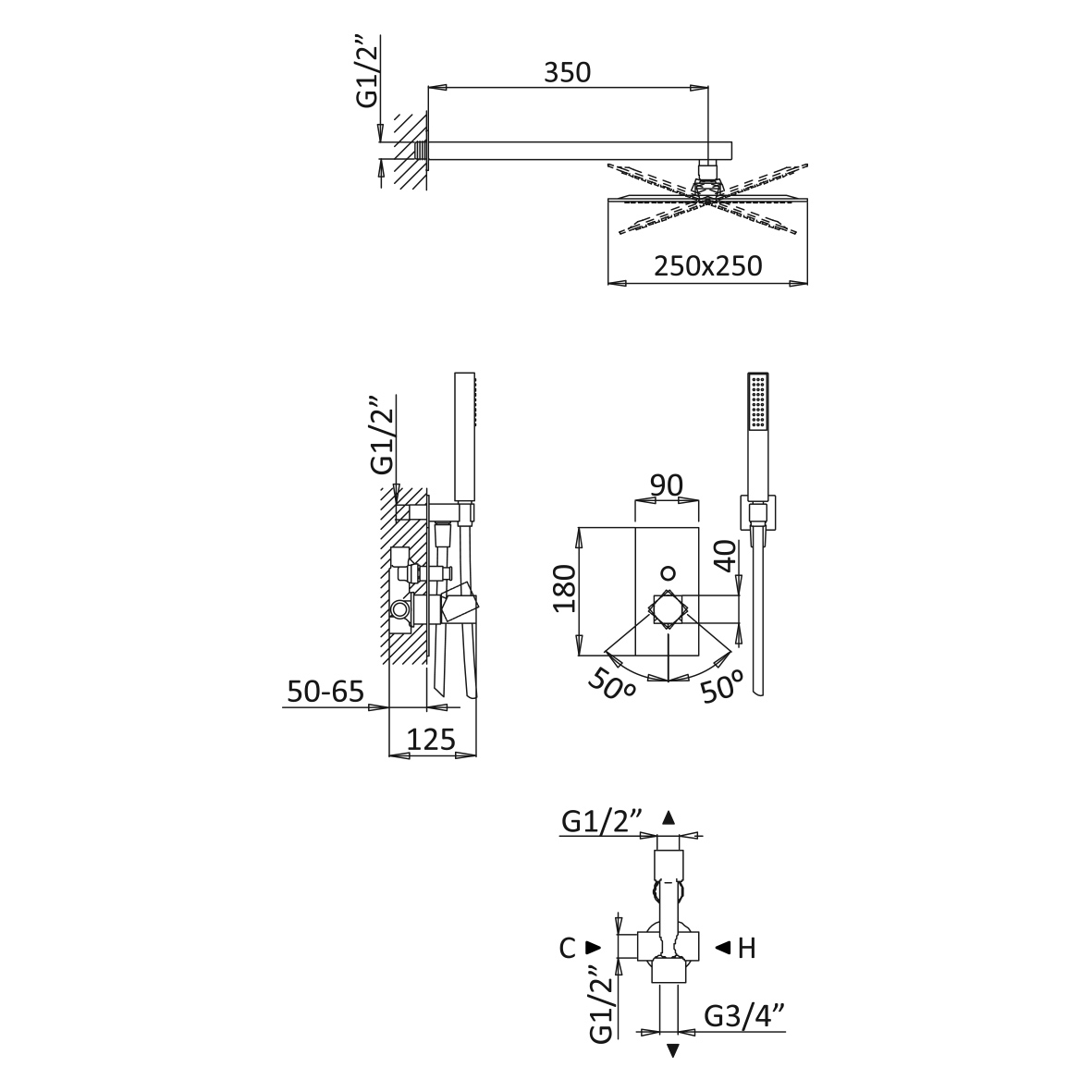 Bruma Escudo 2 Zestaw natryskowy podtynkowy z deszczownicą 250x250 mm i słuchawką prysznicową Chrom 1027651CR