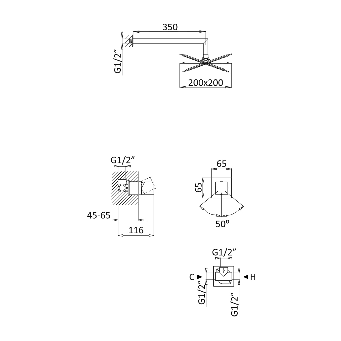 Bruma Escudo 2 Zestaw natryskowy z deszczownicą 200x200 mm ścienną Chrom 1027621CR