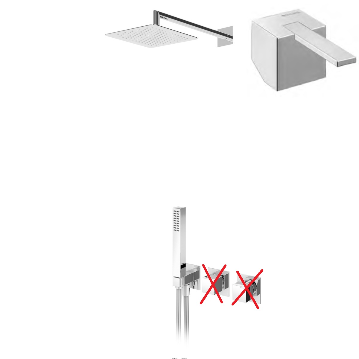 Bateria natryskowa podtynkowa z deszczownicą kwadratową ścienną i słuchawką prysznicową oraz przyłączem kątowym z uchwytem