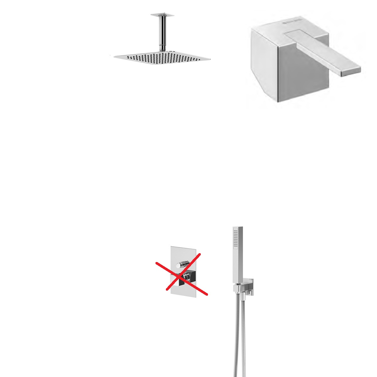 Bateria podtynbkowa natryskowa, z deszczownicą kwadratową sufitową i słuchawką prysznicową