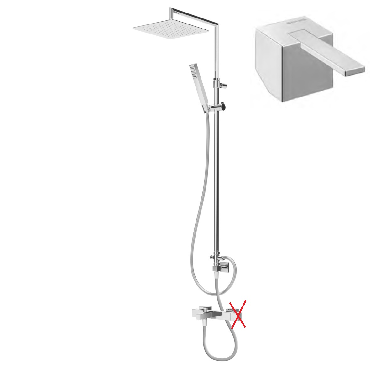Bruma Escudo 2 Zestaw wannowo-natryskowy ścienny z deszczownicą 300x300 mm na ramieniu ruchomym i słuchawką prysznicową Chrom 1022671CR