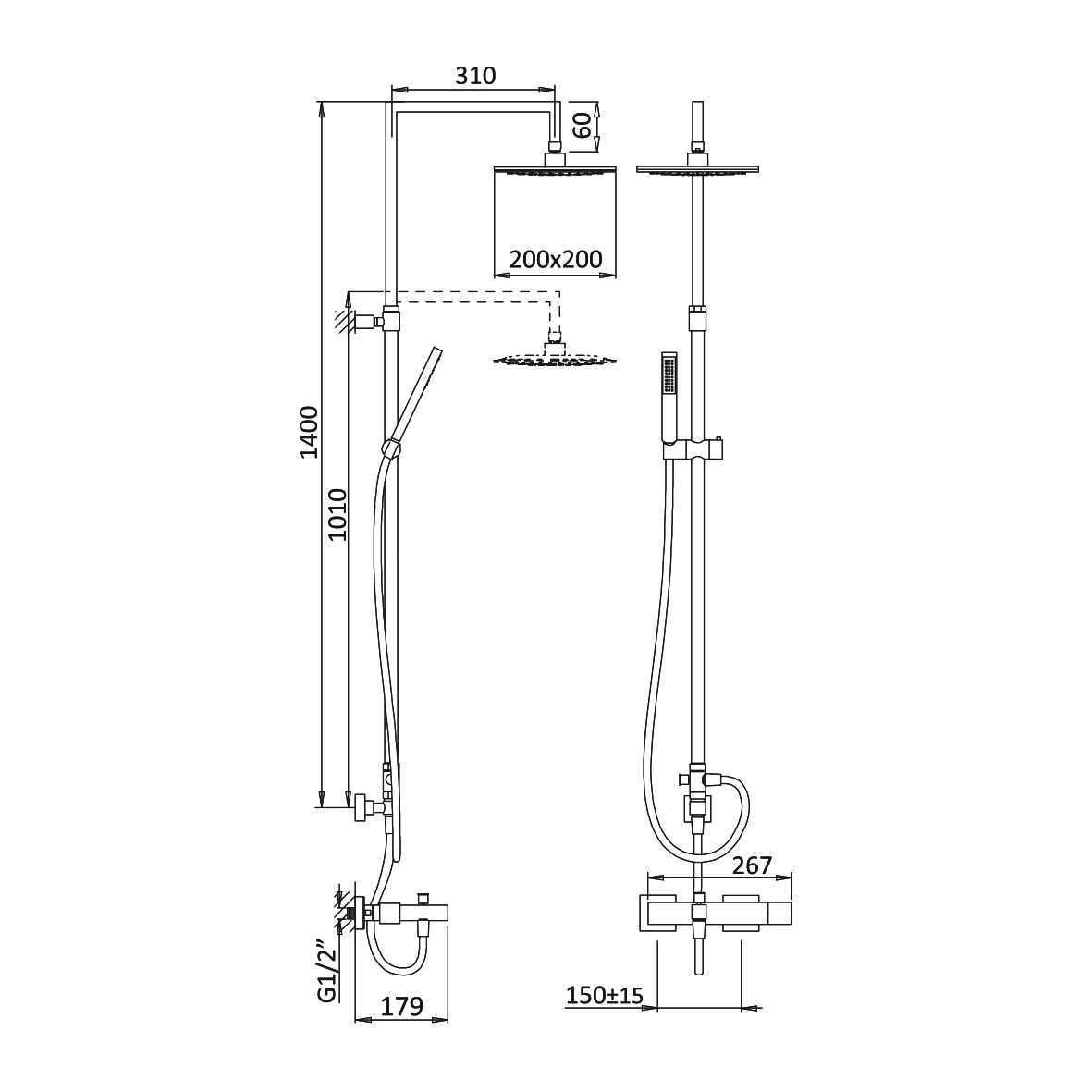 Bruma Escudo 2 Zestaw wannowo-natryskowy ścienna z deszczownicą 200x200 mm na ramieniu ruchomym i słuchawką prysznicową Chrom 1022661CR