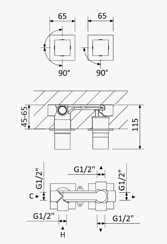 Bateria wannowo-natryskowa podtynkowa 3-drożna
