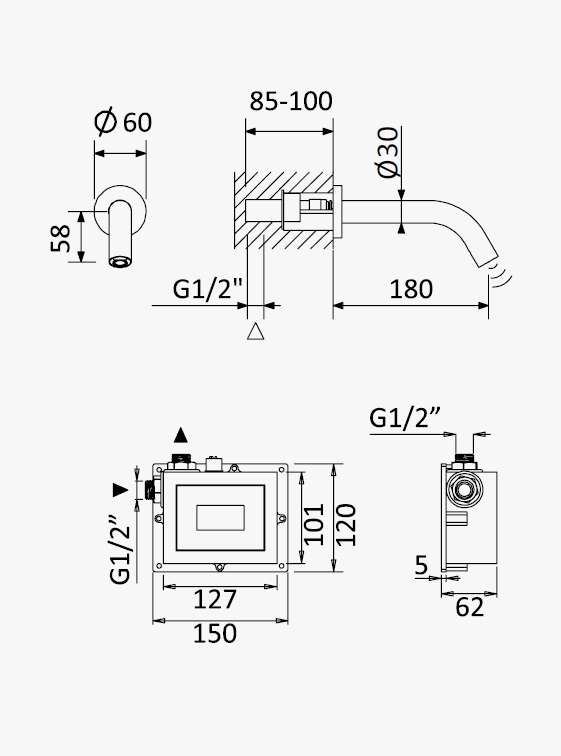 Bateria umywalkowa podtynkowa z czujnikiem pojemnościowym