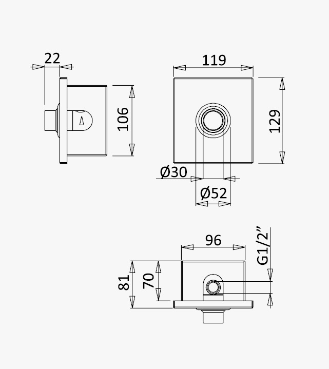 Bruma Bateria do pisuaru podtynkowa samozamykająca z puszką podtynkową Chrom 1430011CR