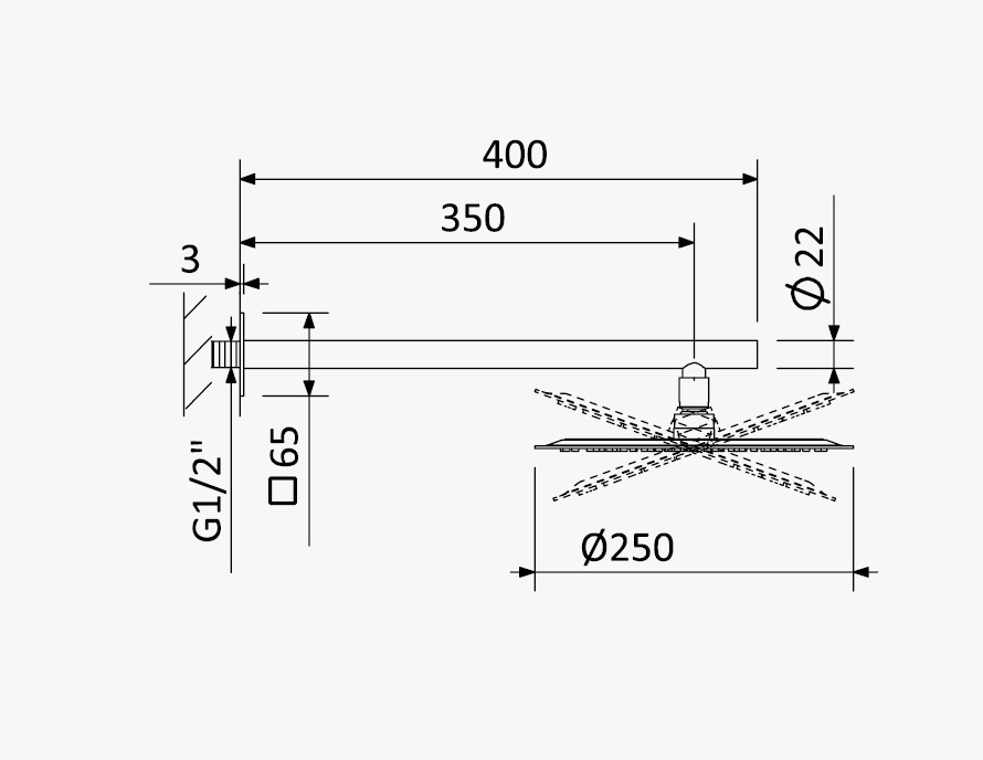 Bruma FlowQ Deszczownica ścienna Ø 250 mm z ramieniem ściennym Chrom 1455246CR