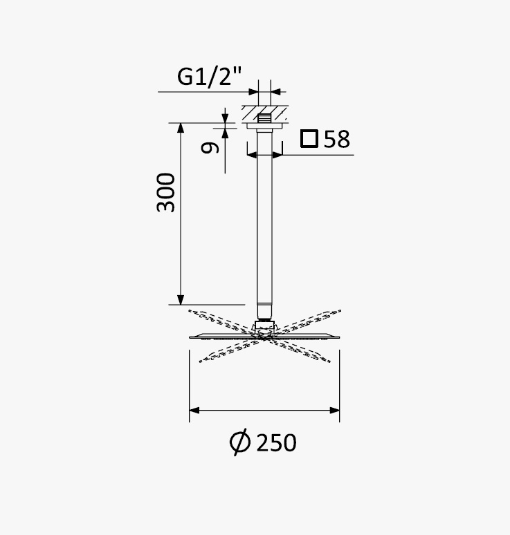 Bruma EloQ Deszczownica Ø 250 mm z ramieniem sufitowym 300 mm Chrom 1455370CR