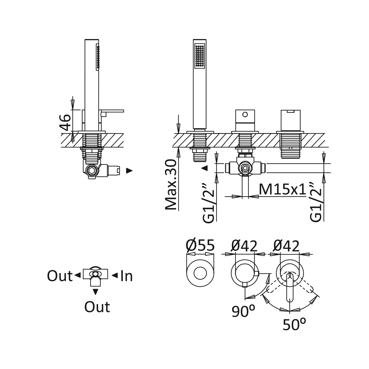 Bruma X-Alpha Bateria wannowo-natryskowa na brzeg wanny Satin stainless steel 1865012IS