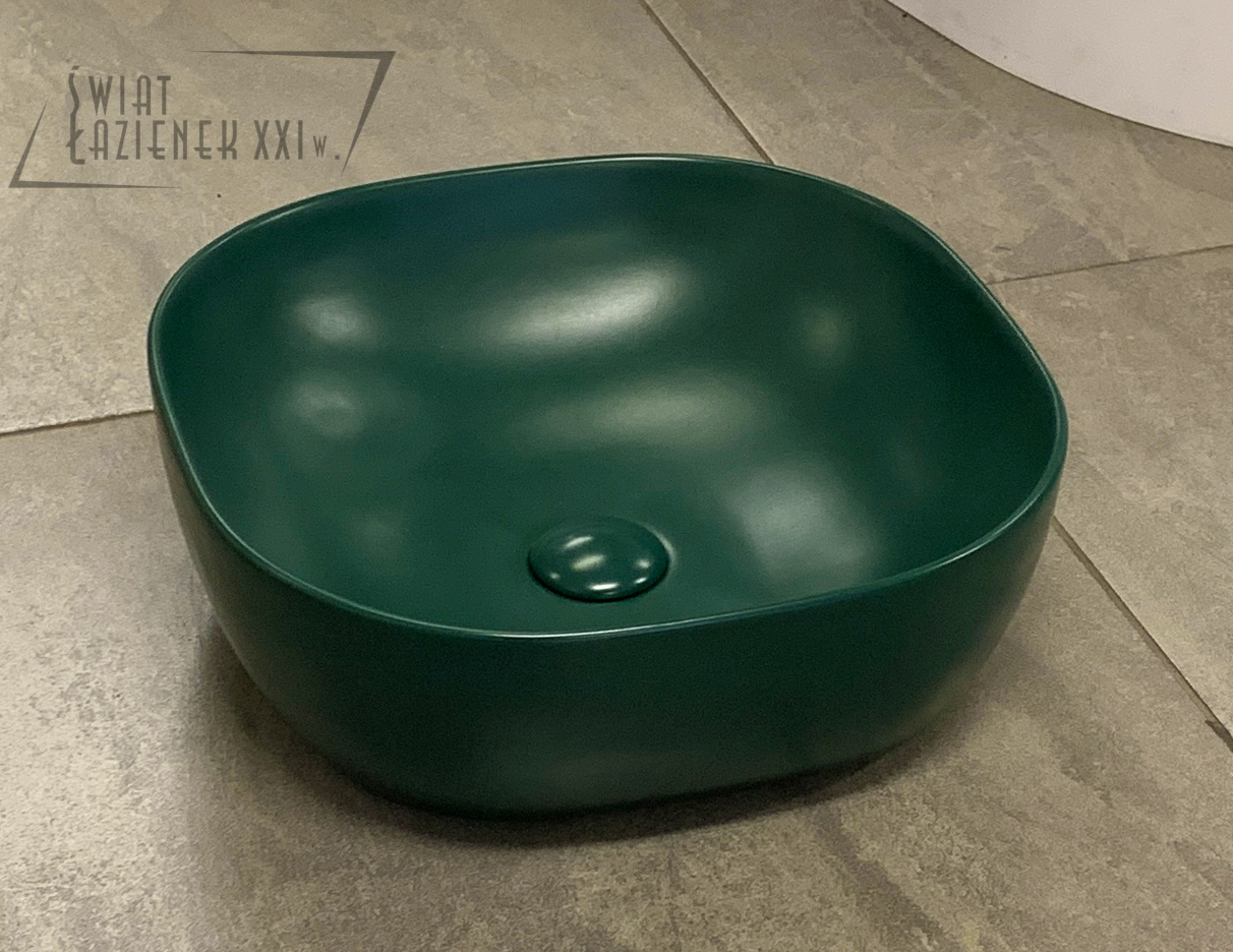 Galatea Design Lurus Umywalka stawiana na blat 41,5x14,5 cm z korkiem klik-klak Dark Green matt/Ciemny zielony mat GD78106TMDG W MAGAZYNIE !!!