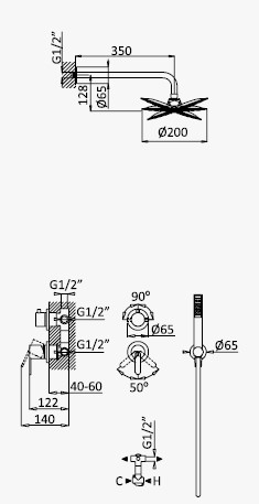 Bruma X-Alpha Zestaw prysznicowy podtynkowy z deszczownicą na ramieniu ściennym i słuchawką prysznicową Satin stainless steel 1867616IS