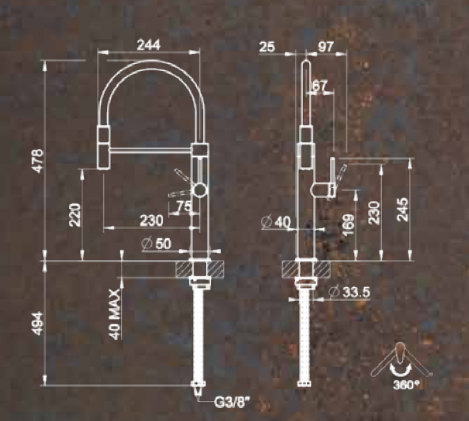 Kolor baterii: Black Metal Brushed (czarna stal szczotkowana)