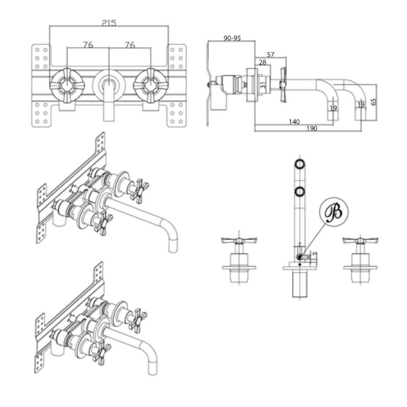 Burlington Riviera Bateria umywalkowa podtynkowa element zewnętrzny chrom RIV1CHR