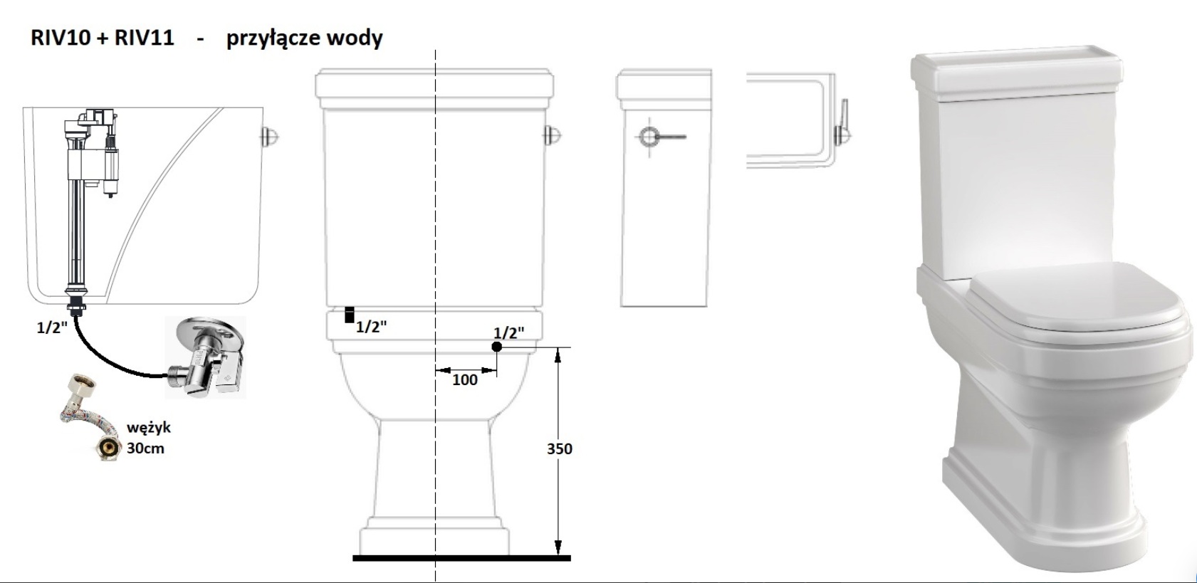 Burlington Riviera Spłuczka do kompaktu biała RIV11 W MAGAZYNIE!!