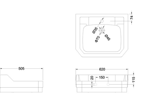 Umywalka może mieć 2 lub 3 otwory na baterię (trzeba zaznaczyć przy zamówieniu)