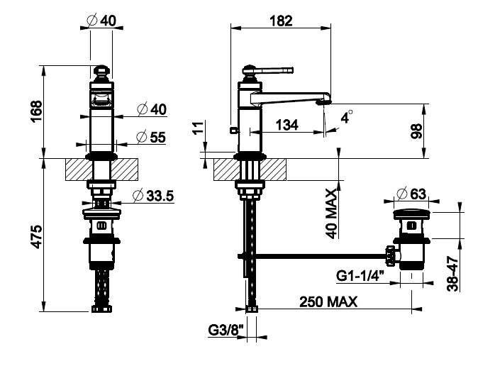 Gessi Venti20 Bateria umywalkowa jednootworowa z korkiem chrom 65001.031