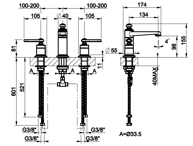 Gessi Venti20 Bateria umywalkowa 3-otworowa bez korka średnia chrom 65014.031