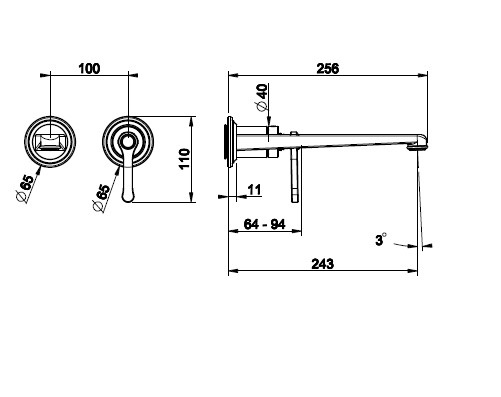 Gessi Venti20 Bateria umywalkowa ścienna z wylewką 25,6 cm element zewnętrzny chrom 65088.031