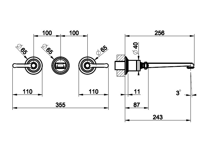 Gessi Venti20 Bateria umywalkowa 3-otworowa z długą wylewką element zewnętrzny chrom 65090.031