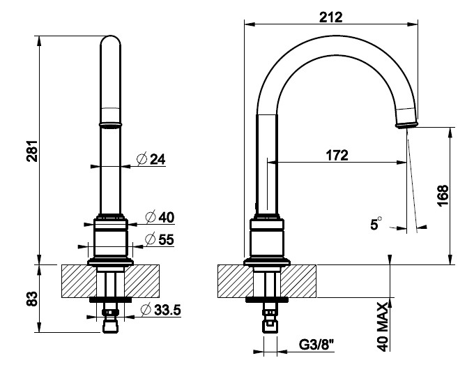 Gessi Venti20 Wylewka umywalkowa jednootworowa średnia chrom 65025.031
