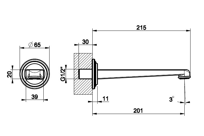 Gessi Venti20 Wylewka umywalkowa ścienna średnia chrom 65102.031